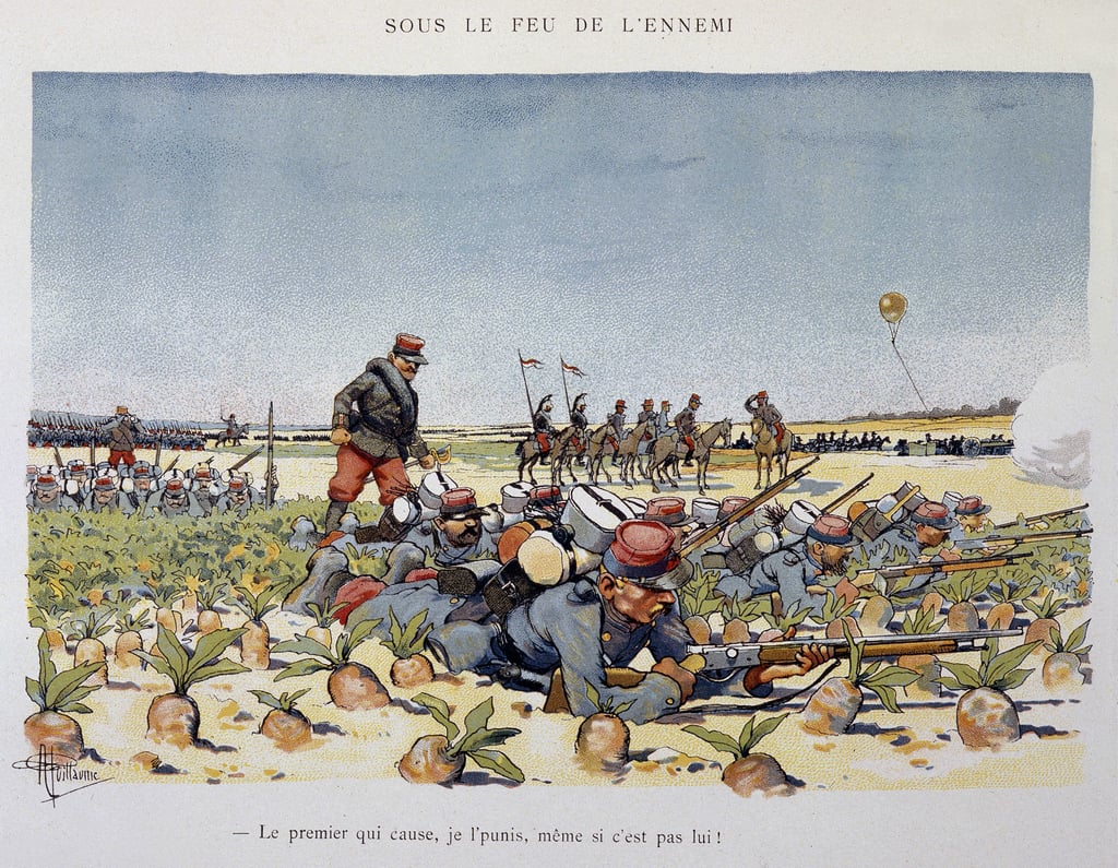 La presse apporte à Albert Guillaume une certaine notoriété et un confort de vie non négligeable. A la même époque, tous les artistes ne peuvent se vanter de pouvoir vivre pleinement de leur art. Mais malgré la reconnaissance et l’admiration des lecteurs des revues, Guillaume s’intéresse de plus en plus au milieu littéraire. Des éditeurs et bien d’autres personnalités rencontrées durant les innombrables salons parisiens lui ont certainement permis de mettre un pied dans ce nouveau monde. Il pourra ainsi piocher dans sa mémoire et son propre vécu pour dessiner des scènes savoureuses se déroulant dans un univers militaire. Guillaume s’en souvient pour avoir lui-même fait son service dans le 130e régiment. Cela se verra notamment dans « Mes campagnes, mes vingt-huit jours ». Dans ces dessins, Albert Guillaume s’intéresse aux scènes de la vie quotidienne, tout en prenant un malin plaisir à les tourner au ridicule. Vrai ou faux, cela provoque le rire et si ces derniers sont souvent moqueurs à l’encontre des officiers, ils participent aussi à véhiculer l’image du fantassin comique n’ayant aucune affection particulière pour l’armée. En définitive, le spectre de la Première Guerre mondiale est encore loin et il est encore l’heure de savourer les derniers instants de paix de la Belle Époque.