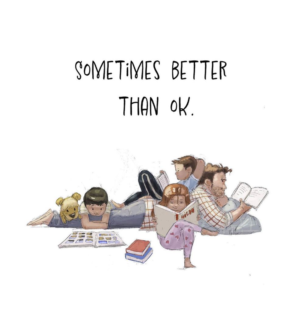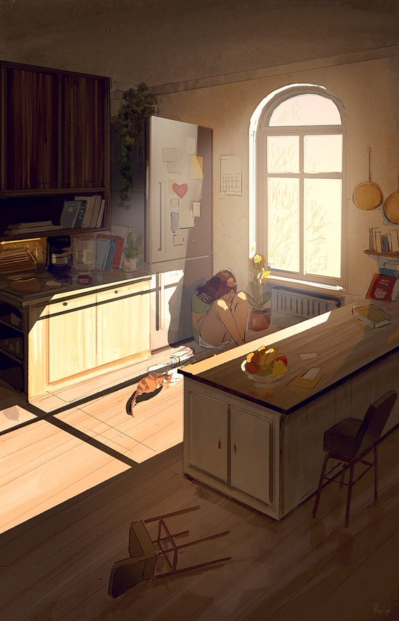 Je vous propose donc plutôt de découvrir aujourd’hui un fantastique artiste dont les œuvres sont devenues si inspirantes lors de mes phases d’écriture que j’ai fini par lui dédier un peu de mon temps afin de vous le présenter. Pour celles et ceux qui ont déjà parcouru l’article consacré à l’incroyable Peter brown (Pete the street), vous comprendrez que Pascal Campion s’inscrit lui aussi dans ce courant d’artistes dont les thèmes de prédilection sont l’intimité, la famille et les scènes de vie. Je suis tout simplement émerveillée à chaque fois que ce dernier publie une nouvelle illustration, heureuse de le retrouver lui, ainsi que sa femme et ses enfants. Ce sont des œuvres qui me parlent tout simplement. L’esthétisme, la poésie et une grande tendresse sont à chaque fois perceptibles à travers elles. Autant avouer que dans cette période de spleen hivernal où l’on a plus facilement tendance à broyer du noir, ces petites illustrations parviennent – en une fraction de seconde – à redonner le moral. J’espère désormais qu’il en sera de même pour vous !