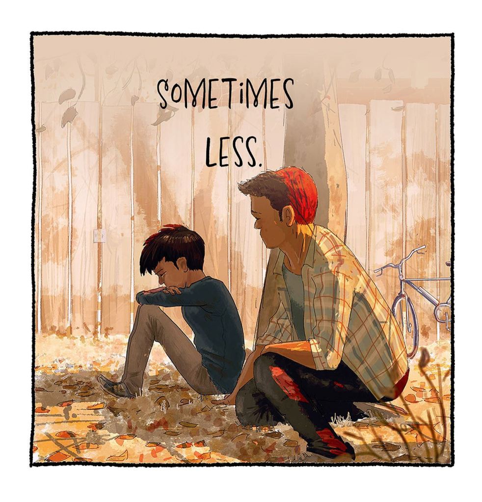 À l’image de l’illustratrice Margaux Motin – très connue en France – Pascal Campion se sert de ses illustrations pour parler de parentalité. Si les scènes peuvent être particulièrement drôles, il ne cache pas non plus les moments les plus difficiles comme pour ses autres thématiques abordées. C’est sans-doute la raison pour laquelle nous parvenons une fois de plus à nous immerger aussi bien dans son art. Toujours aussi sincère, nous réalisons que la vie de parents n’est pas simplement faites d’instants merveilleux. Bien au contraire ! Il n’en demeure pas moins que même dans les moments les plus compliqués, une certaine forme de douceur peut exister.