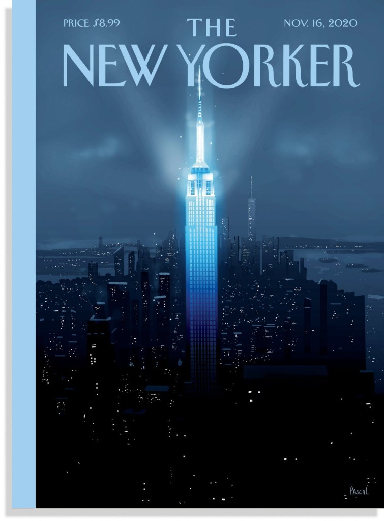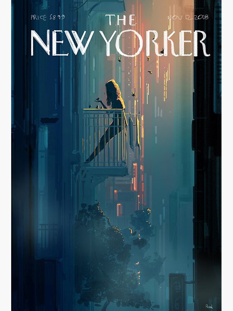 Je ne vous apprendrai rien de nouveau sur la vie privée de cet artiste ! Mon but n’étant pas de faire une biographie, mais de présenter son art. Je peux néanmoins vous dire qu’il est aujourd’hui marié à une femme lui servant d’inspiration dans quasiment toutes ses illustrations, ainsi que l’heureux papa de trois enfants comprenant une fille et deux jumeaux ! Franco-américain, il a quitté les États-Unis lorsqu’il avait trois ans pour venir vivre en France. Son frère fut l’un des premiers à l’initier au dessin et c’est notamment grâce à ce dernier qu’il put faire ses premiers croquis numériques. En 2005, il retourne en Amérique afin de s’installer avec son épouse dans la baie de San Francisco. Dès 2006, enfin, Pascal Campion commence à publier sur les réseaux ses illustrations. Il fait sensation, s’inscrivant à son tour dans une longue liste d’artistes utilisant leur talent pour parler de leurs familles. Il appelle cela des Moments of life (scène de vie) et en produit jusqu’à 6000 aujourd’hui visibles sur sa page Facebook. La consécration vient en 2013 lors de son exposition à la Galerie Arludik de Paris. Le train est désormais bien lancé et Pascal Campion est aujourd’hui reconnu comme une véritable référence dans les arts numériques au point de participer à des projets pour Disney, Dreamworks et bien d’autres encore. Il produit notamment des couvertures pour le magazine The New Yorker (comme celles présentées ci-dessous !)