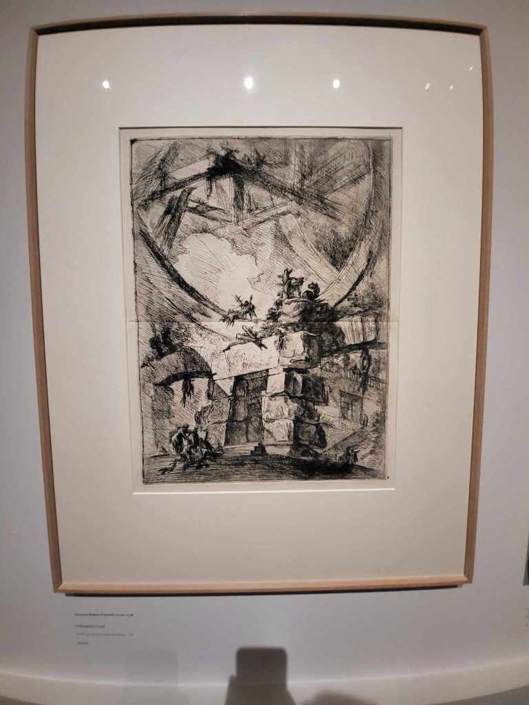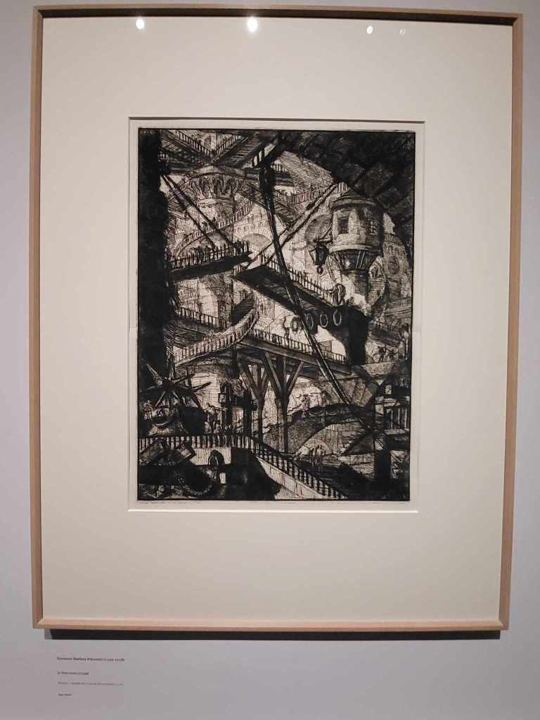 Aussi connu comme le vedutisme (en italien, vedutismo, de veduta, la vue, est un genre pictural particulièrement florissant en Italie, notamment Venise et Rome. Les paysages urbains et architecturaux remplacent ainsi les scènes religieuses. Ce sont les lithographies que nous avons l’habitude de trouver dans les grandes villes, chez les antiquaires, etc… Très à la mode dès le 18e siècle, c’était un moyen de créer des éditions limitées en série et d’en faire commerce. L’idée n’est ainsi plus d’avoir une oeuvre unique, mais d’en reproduire le plus d’exemplaires possible afin de réaliser un certain profit. J’ai, pour ma part, était véritablement impressionnée par les oeuvres de Piranesi, empruntant largement au genre « fantastique ». L’oeuvre « Le Pont-Levis » est notamment saisissant, tant sur le plan de sa composition (pouvant presque rivaliser avec un dessin de Schuitten « Les cités obscures », et le château de Poudlard et ses escaliers magiques), mais aussi pour sa réalisation à l’eau-forte qui dut nécessiter un nombre d’heure de travail pharaonique.